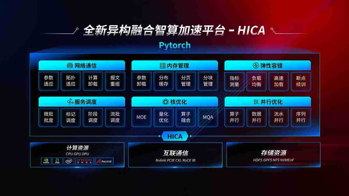 通过自研的服务层、、、、中间适配层、、、以及调度编排算法,,,,采用数据并行、、、模型并行等多种并行方式,,,,把并行计算任务进行有效的分解,,,,使其分别由相应的软件栈和算力资源来承接。。。。当GPU资源变化,,,HICA可以实时动态调度计算子任务并调整模型拓扑和架构,,,,以充分聚合各种算力资源。。。。